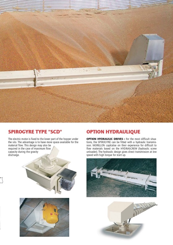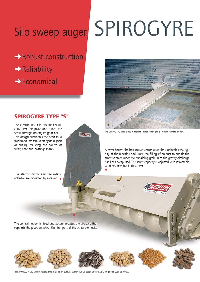 ساخت شرکت موریون فرانسه (Morillon). معتبر ترین سازنده جاروی تخلیه سیلو در دنیا با بیش از یک قرن تجربه جاروی تخلیه سیلو یا مارپیچ تخلیه سیلو بمنظور تخلیه غلات باقیمانده در کف سیلوها به کار برده می شود.
